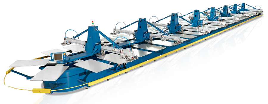 ● 6 - 20 high precision presses, achieves high garment printing quality